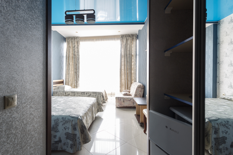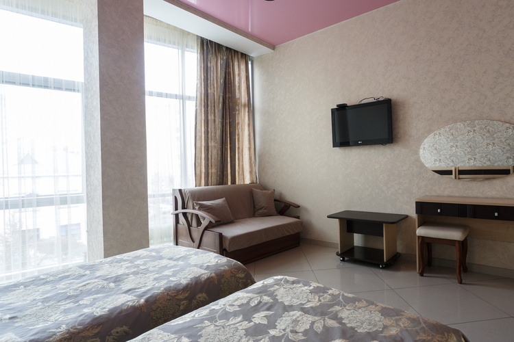 Площадь номера: 25 м2. В номере: две односпальные кровати и диван-кровать.