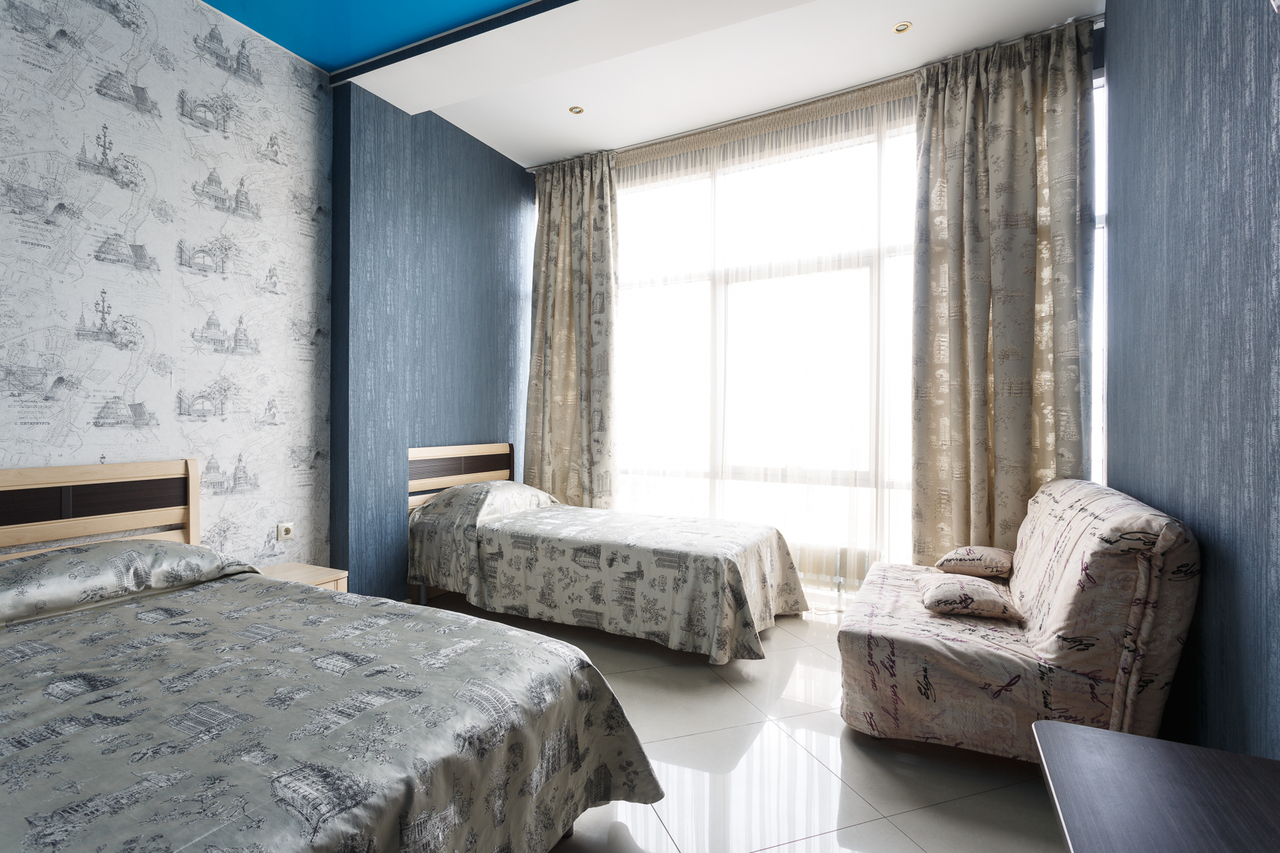 для 2 человек с 1 дополнительным местом 2 односпальные кровати, 1 диван-кровать номер для некурящих в гостинице 1 номер данной категории
