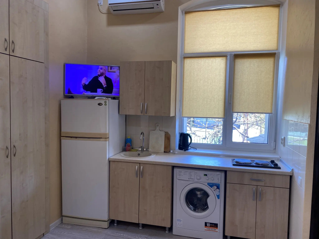 Гостиница Квартира Студия на Кирова 82, адрес на карте Евпатория, улица Кирова, д. 82, с характеристиками номеров и доступностью онлайн бронирования на сайте vashotel.ru , цены проживания и удобства.
