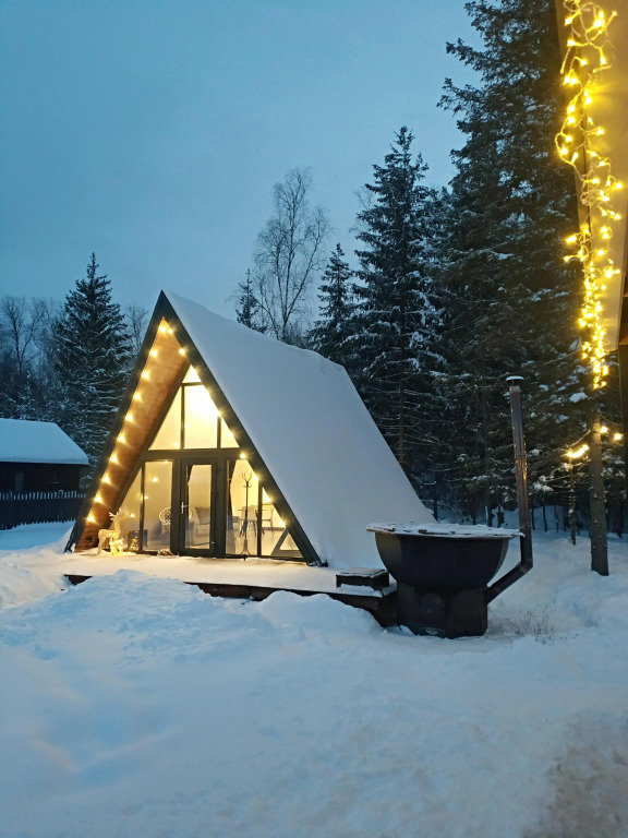 Гостиница Дом А-фрейм с банным чаном у леса, адрес на карте Фрязино, территория Зеленая, д.31, с характеристиками номеров и правом онлайн бронирования на ресурсе vashotel.ru , цены проживания и удобства.