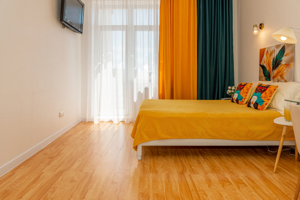 Номер уютно обставлен и оснащён необходимым, чтобы отдохнуть после долгого и насыщенного дня. Имеются телевизор. Оснащение зависит от выбранной категории номера.