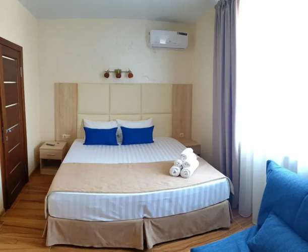 Гостевой дом является современным домом на 8 номеров категории «Комфорт», которые полностью оборудованы всем необходимым. В открытом доступе находится современная оборудованная кухня, укомплектованная оборудованием и посудой. Во дворе расположен палисадник, растёт виноград, под навесом есть зона в тени, где стоят столы, качели-релакс и есть детская зона. На территории имеется бесплатная парковка.
