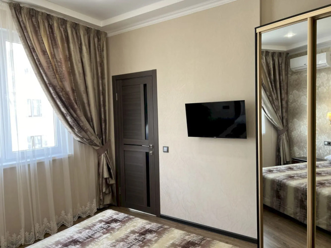 В номере вы найдёте телевизор. Оснащение зависит от выбранной категории номера.