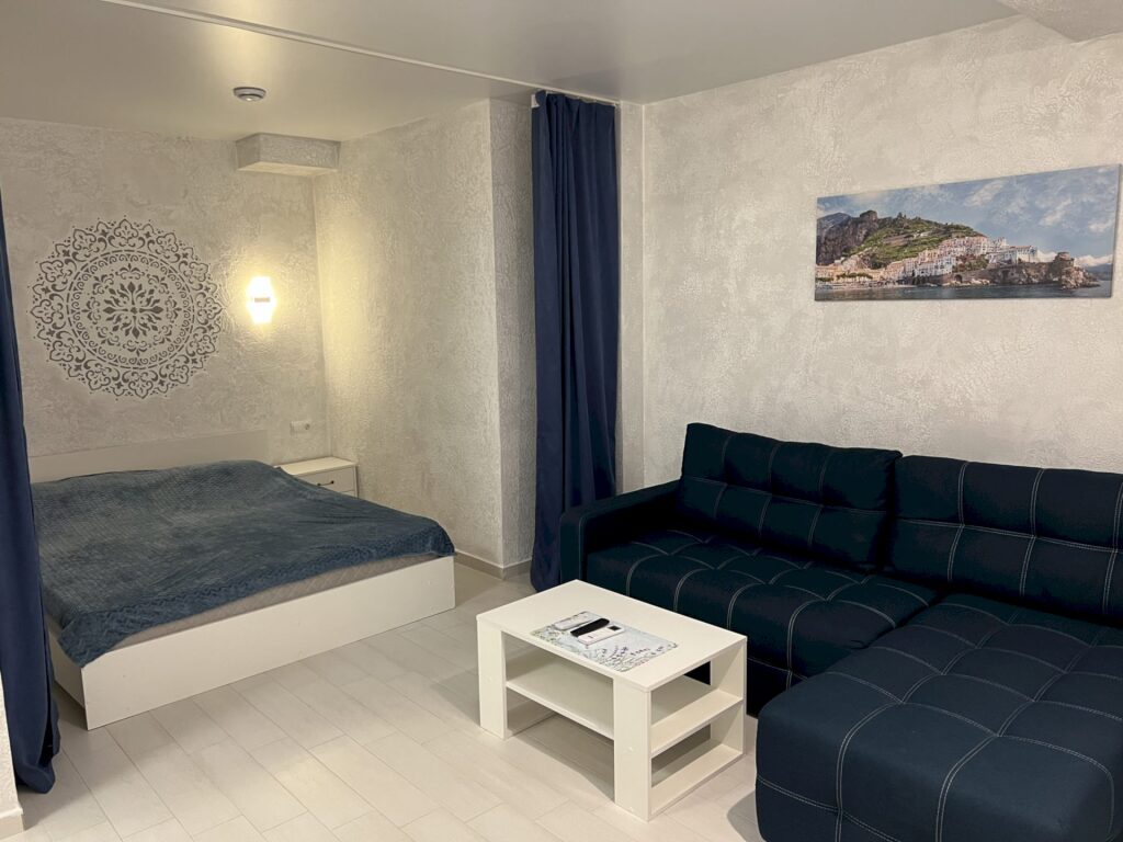 В номере вы найдёте телевизор. Оснащение зависит от выбранной категории номера.