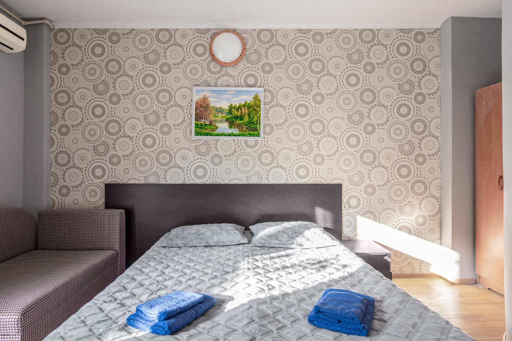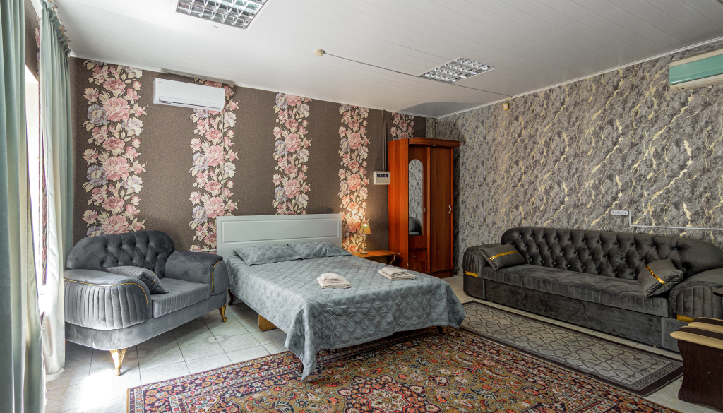 Номер уютно обставлен и оснащён необходимым, чтобы отдохнуть после долгого и насыщенного дня. Имеются телевизор. Оснащение зависит от выбранной категории номера.