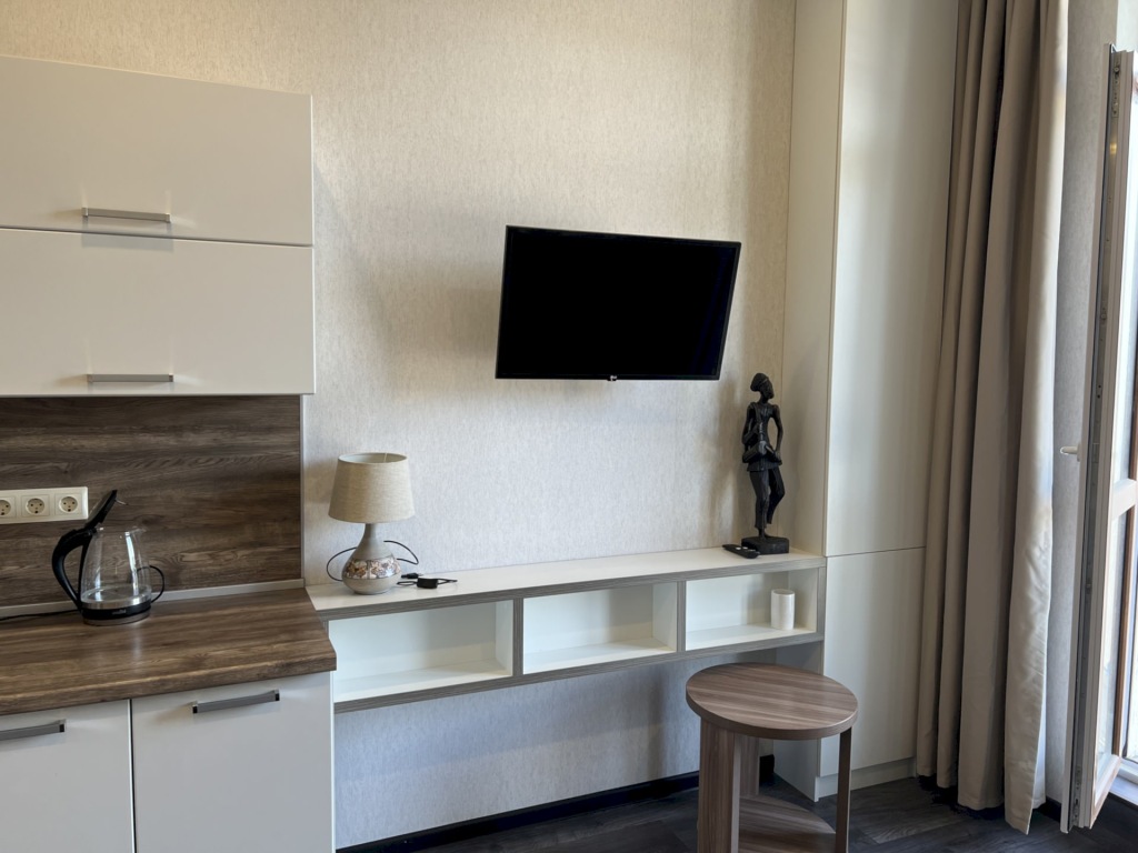 В номере вы найдёте телевизор. Перечисленные услуги есть не во всех номерах.