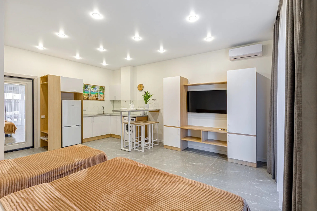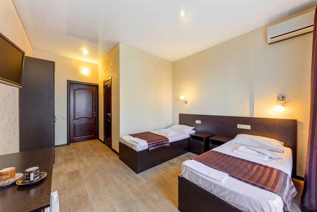 Номер уютно обставлен и оснащён необходимым, чтобы отдохнуть после долгого и насыщенного дня. Имеются телевизор. Перечисленные услуги есть не во всех номерах.