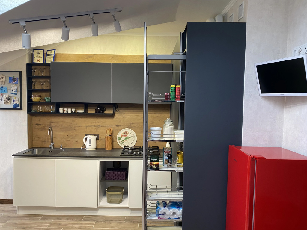 В распоряжении гостей дизайнерская кухня и бытовая техника — посудомоечная машина, холодильник, стиральная машина, два телевизора, кофеварка, микроволновая печь, машина, чайник. В апартаментах есть бесплатный Wi-Fi.