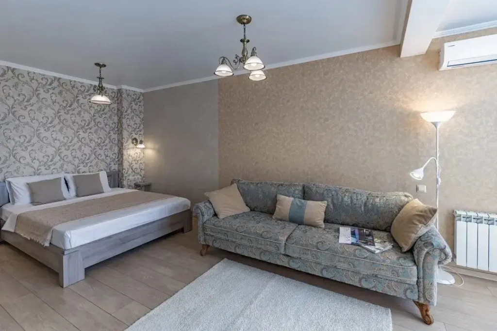 Номер уютно обставлен и оснащён необходимым, чтобы отдохнуть после долгого и насыщенного дня. Имеются телевизор. Оснащение зависит от выбранной категории номера.
