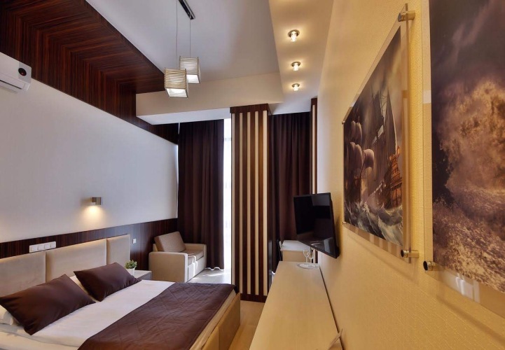 Номер уютно обставлен и оснащён необходимым, чтобы отдохнуть после долгого и насыщенного дня. Имеются телевизор. Оснащение зависит от выбранной категории номера.