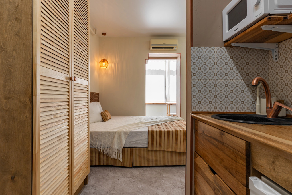 Чтобы вы могли отдохнуть после долгого дня, в номере есть телевизор и халат. Оснащение зависит от выбранной категории номера.