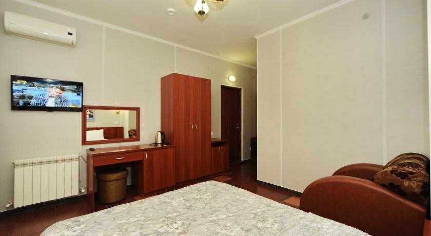 В номере вас будут ждать душ, телевизор, халат и тапочки. Оснащение зависит от выбранной категории номера.