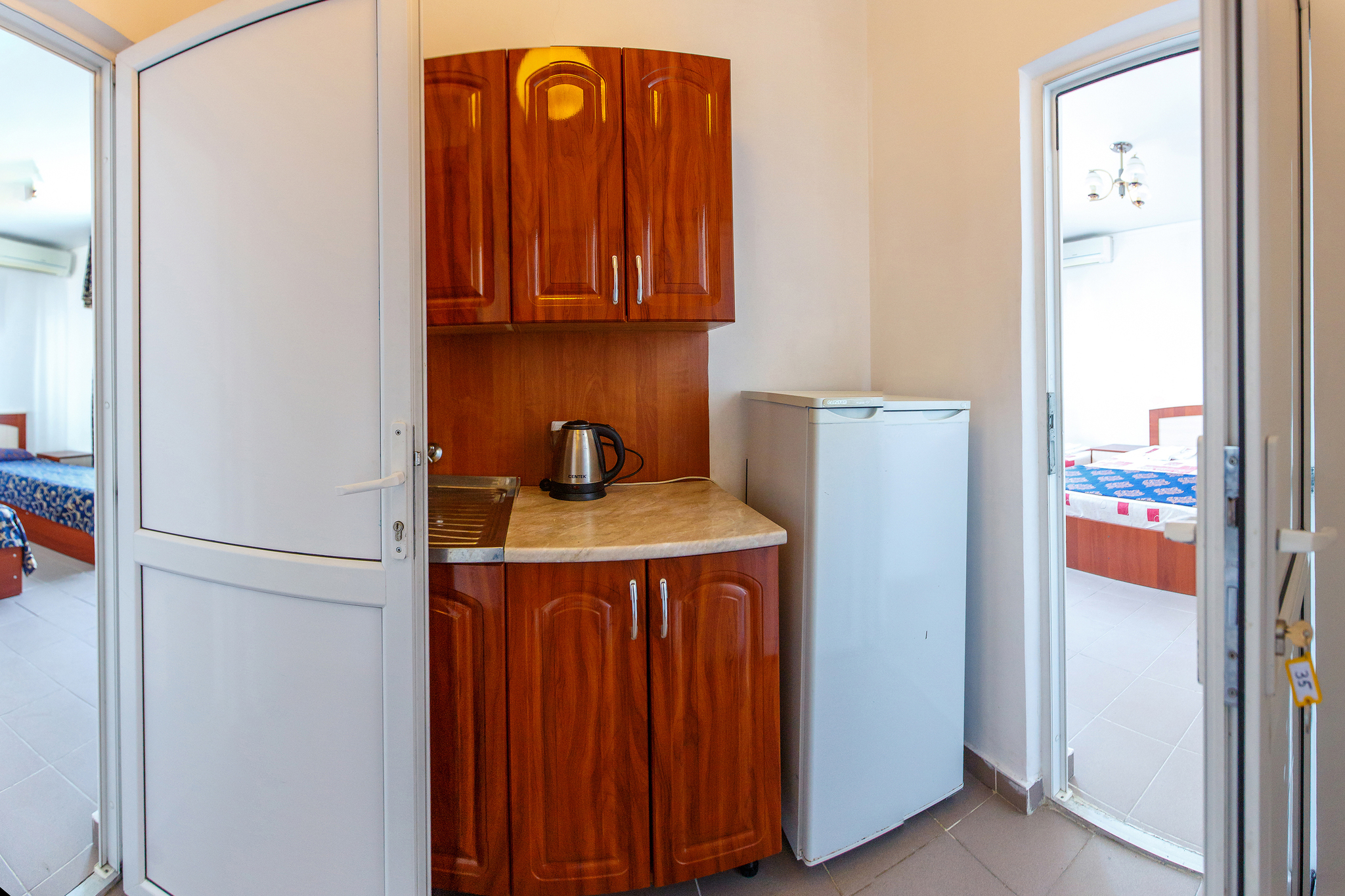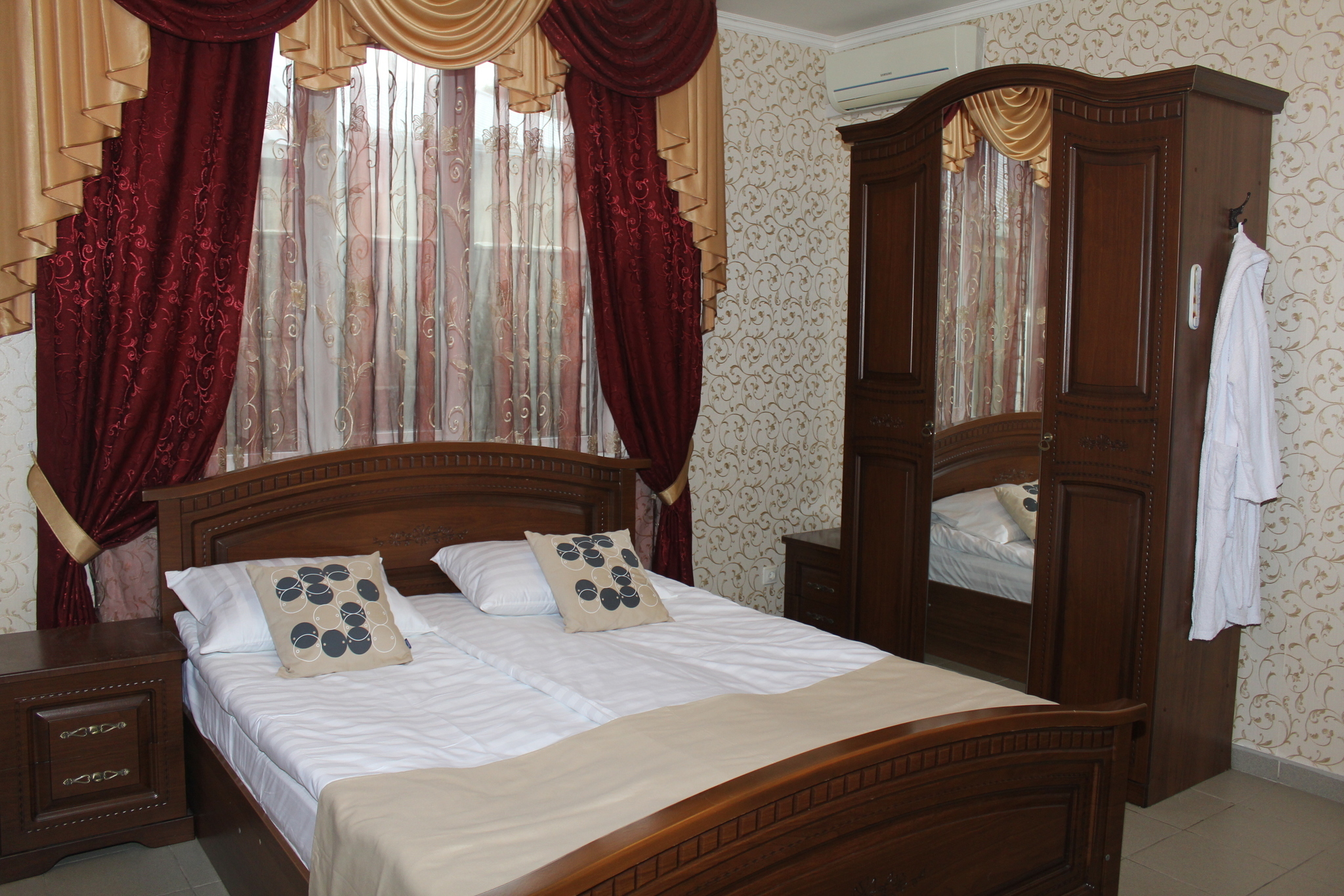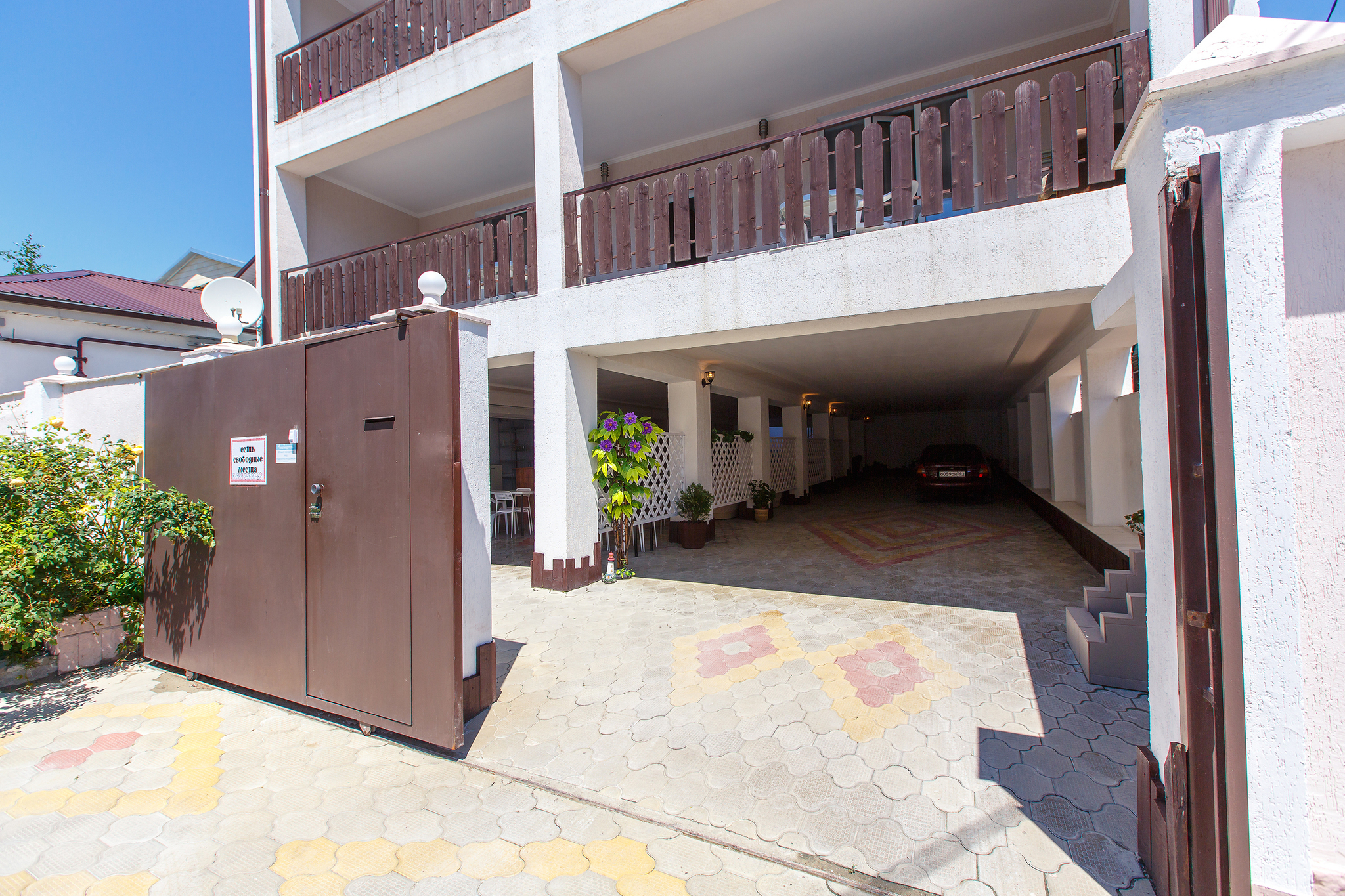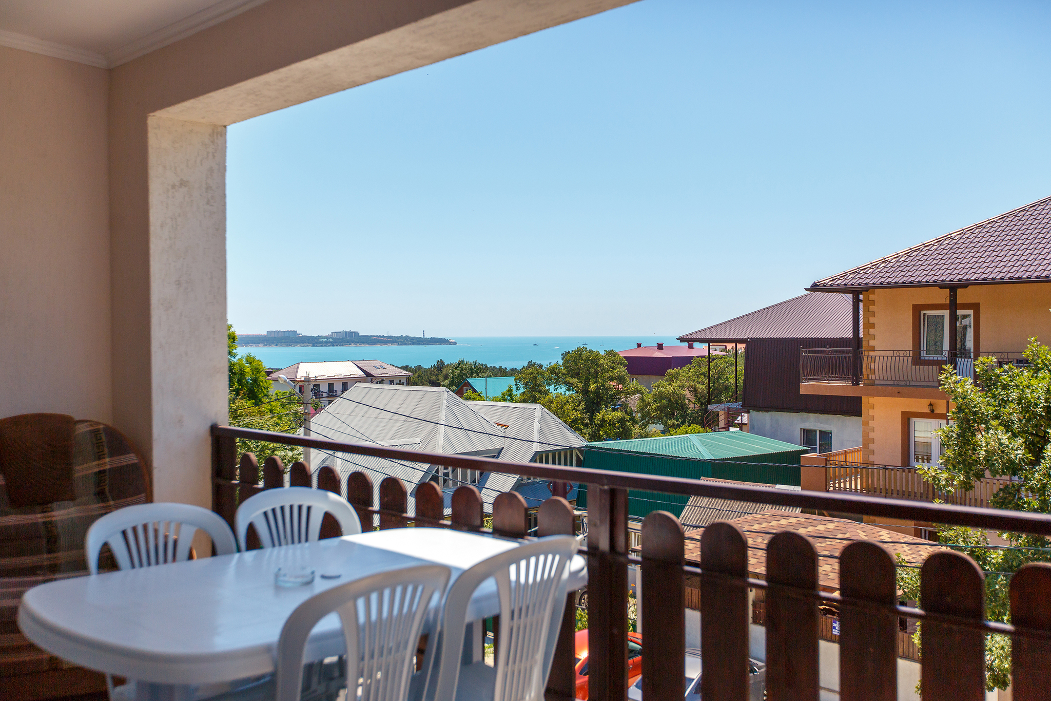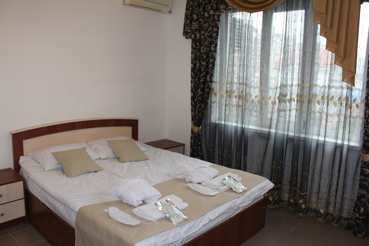 Отель имеет 3 этажное здание, расположенное на второй береговой линии, на шикарных террасах, расположенных на каждом этаже отеля Вы можете любоваться живописным видом на город, С террасы третьего этажа открывается шикарный вид на Геленджикскую бухту. Все номера оснащены санузлами (душ+туалет), кондиционерами, приятным белоснежным бельем, в каждом номере халат+тапочки. На втором этаже отеля оборудована кухня для самостоятельного приготовления пищи. На третьем этаже расположены номера для большой семьи и компании со своей кухней с шикарным видом на море с общей террасы.