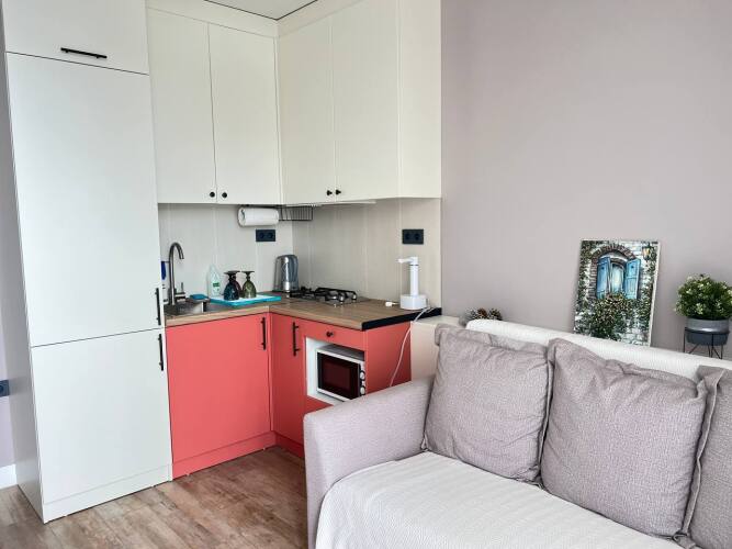 В квартире есть: двуспальная кровать 160х200, два раскладных дивана, небольшая укомплектованная кухня с обеденной зоной и посудой, гардеробная, телевизор, Wi-Fi, кондиционер, стиральная машина, фен, гигиенические принадлежности, полотенца и постельное бельё. На балконе оборудована релакс-зона с видом на бухту.