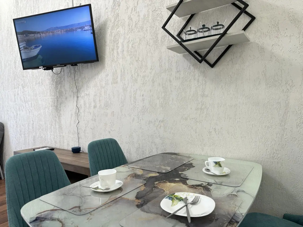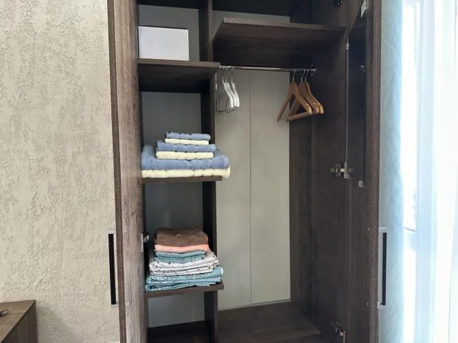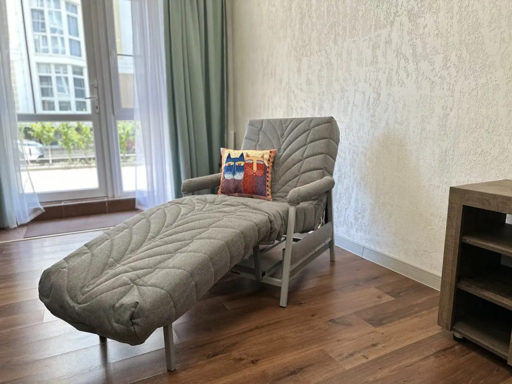 Квартира оснащена необходимым: раскладной диван, кресло-кровать, укомплектованная кухня с обеденной зоной и посудой, телевизор, Wi-Fi, кондиционер, стиральная машина, гигиенические принадлежности, полотенца и постельное бельё.