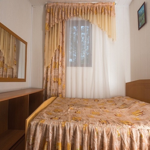 На улице личная беседка для отдыха. В домике прихожая для багажа и обуви, зеркало, вешалка. Комната с окном, кровать двуспальная (возможна комплектация 2-мя односпальными), тумба с зеркалом, посуда.