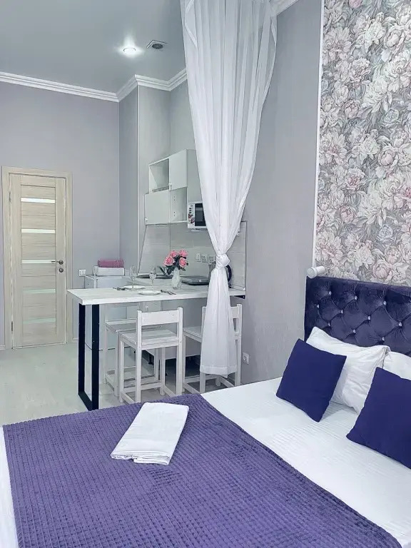 Гостиница Стильная студия Фиолет возле парка и лебединого озера, адрес на карте Горячий Ключ, ул.Рябиновая, д2Бк2, с описанием номеров и правом онлайн бронирования на сайте vashotel.ru , цены проживания и удобства.