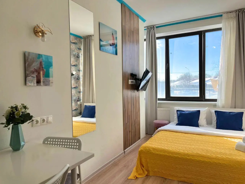 Номер уютно обставлен и оснащён необходимым, чтобы отдохнуть после долгого и насыщенного дня. Имеются телевизор. Перечисленные услуги есть не во всех номерах.