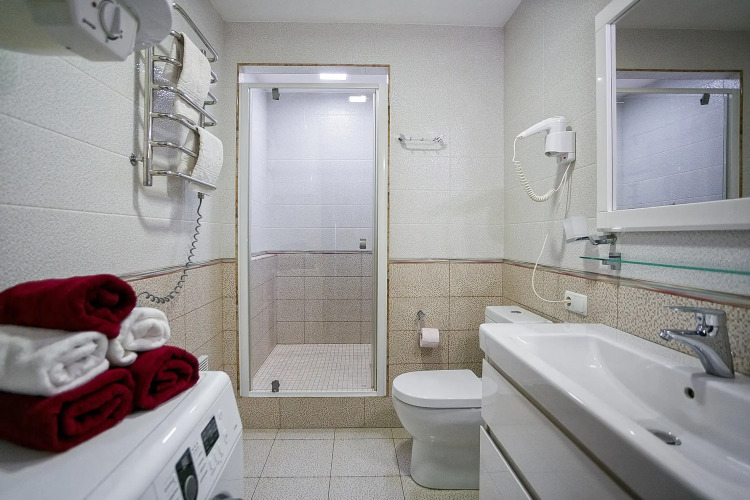 Удобно для гостей с ограниченными возможностями: на верхние этажи гостей поднимает лифт. Персонал апартаментов говорит на русском.