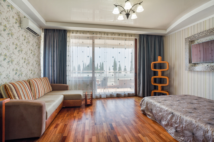 В номере вас будут ждать телевизор. Оснащение зависит от выбранной категории номера.