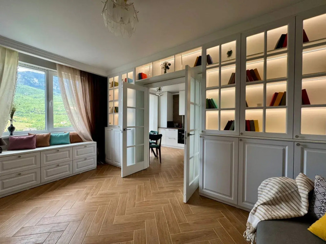 Гостиница Квартира стильная двухкомнатная в Гурзуфе, адрес на карте Гурзуф, улица 60 лет СССР, д.13, с характеристиками номеров и правом онлайн бронирования на площадке vashotel.ru , цены проживания и удобства.