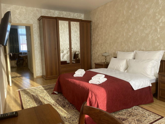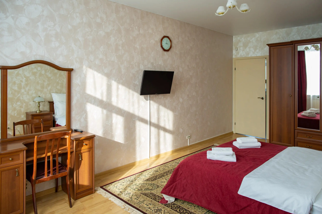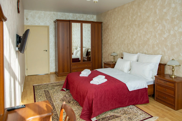 Для бронирования доступны просторные 3-комнатные апартаменты с двумя изолированными спальнями и гостиной, совмещённой с кухней. Максимальное размещение — до 8 гостей.