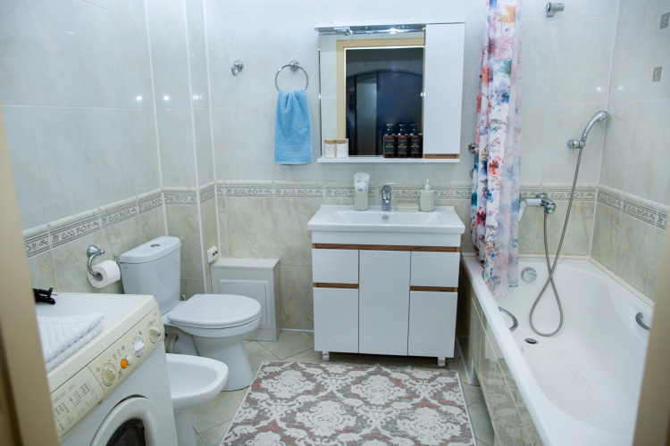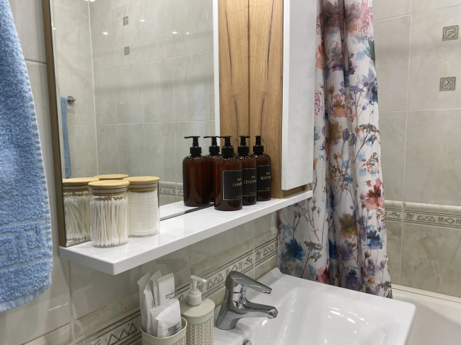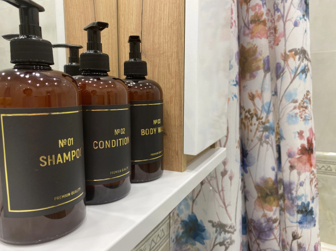 Гостям предоставляются фен, утюг и гладильная доска, ролик для чистки одежды, губка для обуви. В наличии индивидуальные средства гигиены: зубные наборы, бритвенный станок, шампунь, кондиционер для волос, гель для душа, мыло, тапочки, мягкие полотенца. Также имеются: стиральный порошок, пенка для мытья посуды, овощей и фруктов, чистящие и моющие средства, туалетная бумага, бумажные салфетки и мешки для мусора.