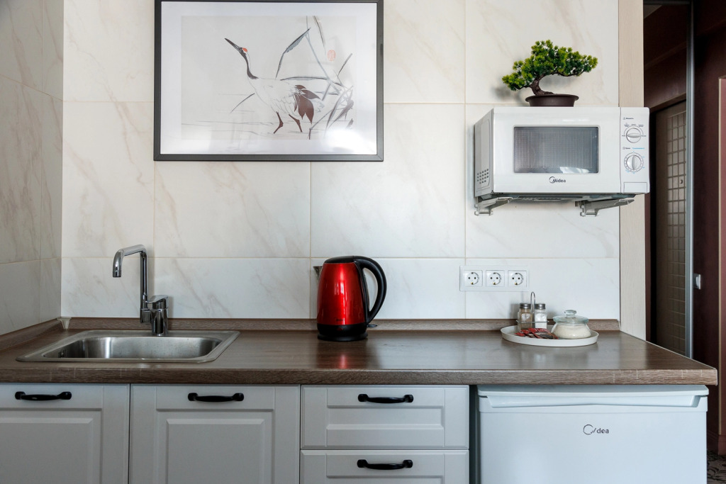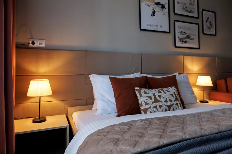 В номере вы найдёте телевизор и халат. Оснащение зависит от выбранной категории номера.
