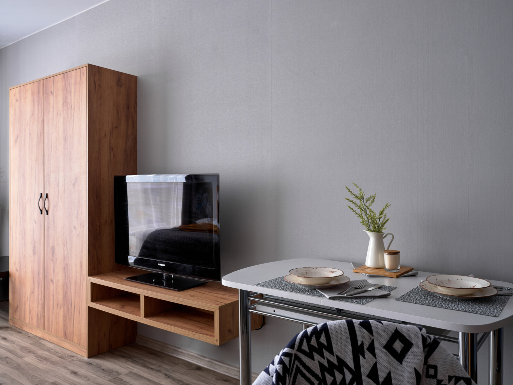 Чтобы вы могли отдохнуть после долгого дня, в номере есть телевизор и халат. Перечисленные услуги есть не во всех номерах.