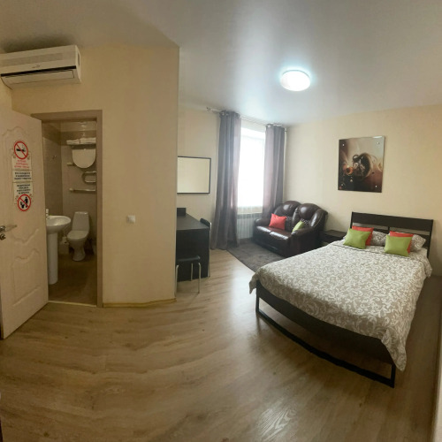 Все номера в современном стиле укомплектованы телевизором с плоским экраном и цифровыми каналами, холодильником, чайником. В каждом номере персональный душ, фен и бесплатные туалетно-косметические принадлежности. В номерах полулюкс предоставляется кондиционер, халат, тапочки, минеральная вода, чай и кофе.