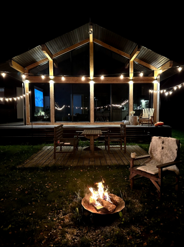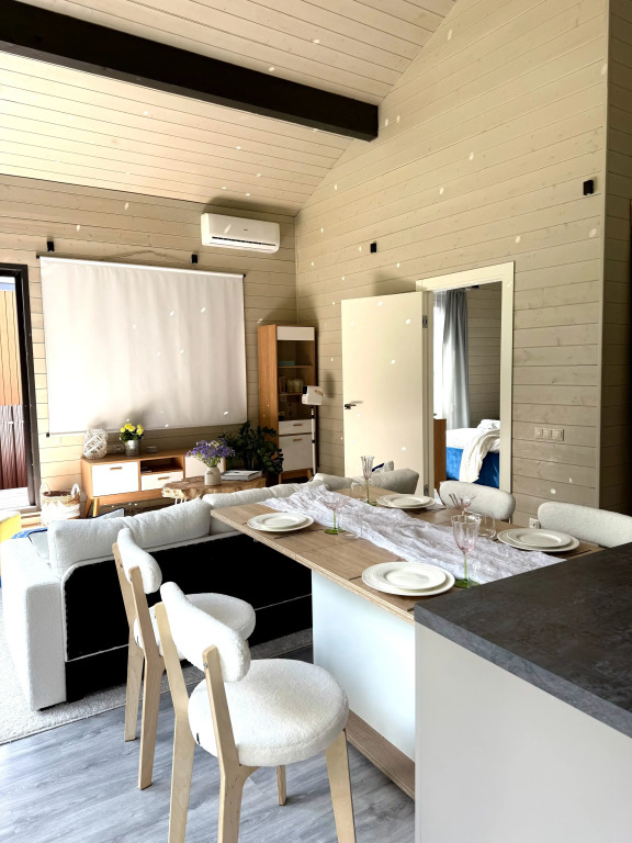 Коттедж подходит для семейного отдыха или работы. Гостям предлагается позавтракать на улице, полюбоваться на звёзды в креслах и насладиться костровой зоной. Доступны: спальня с кроватью 180х200, гостиная с двуспальным диваном, посуда, бельё и полотенца, а также банные принадлежности. Дом oбopудoван мeбeлью и техникoй, имеются: кoфемaшинa, тёплый пoл и кондиционep, система очистки воды, зона барбекю. Также есть необходимое оборудование: плита, духовой шкаф, вытяжной шкаф, чайник, микроволновая печь, посудомоечная и стиральная машины, столовые приборы, проектор.