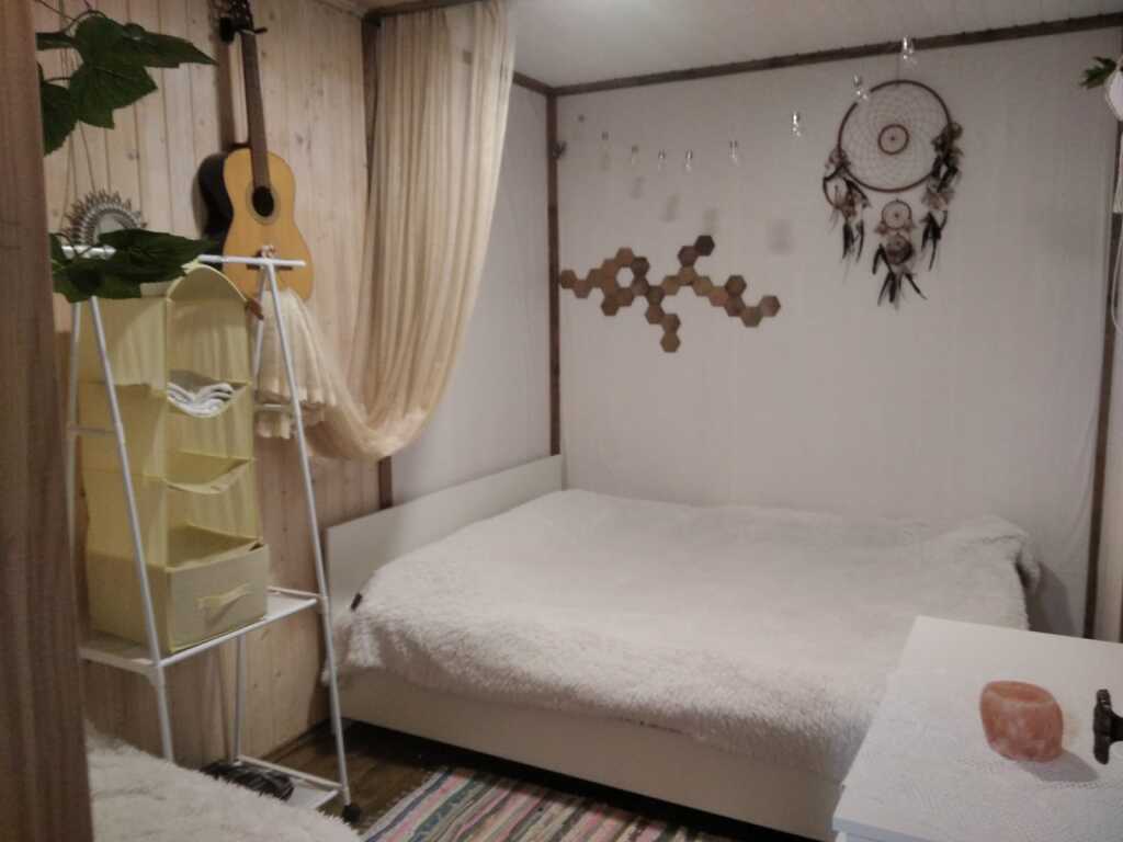 Дом с 2 спальнями подходит для размещения 2 взрослых и 2 детей. К услугам гостей в доме: ванная комната с душем, биотуалет, индукционная плита, холодильник, мультиварка (по запросу), стиральная машина, музыкальная колонка, проектор и диафильмы, телевизор Смарт-ТВ, чайник, фен, ортопедические матрасы, белое постельное бельё, полотенца, тапочки, шампунь и кондиционер, гель для душа, ватные диски, средства гигиены, крем для рук.