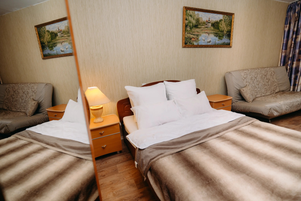 В номере вы найдёте телевизор. Оснащение зависит от выбранной категории номера.