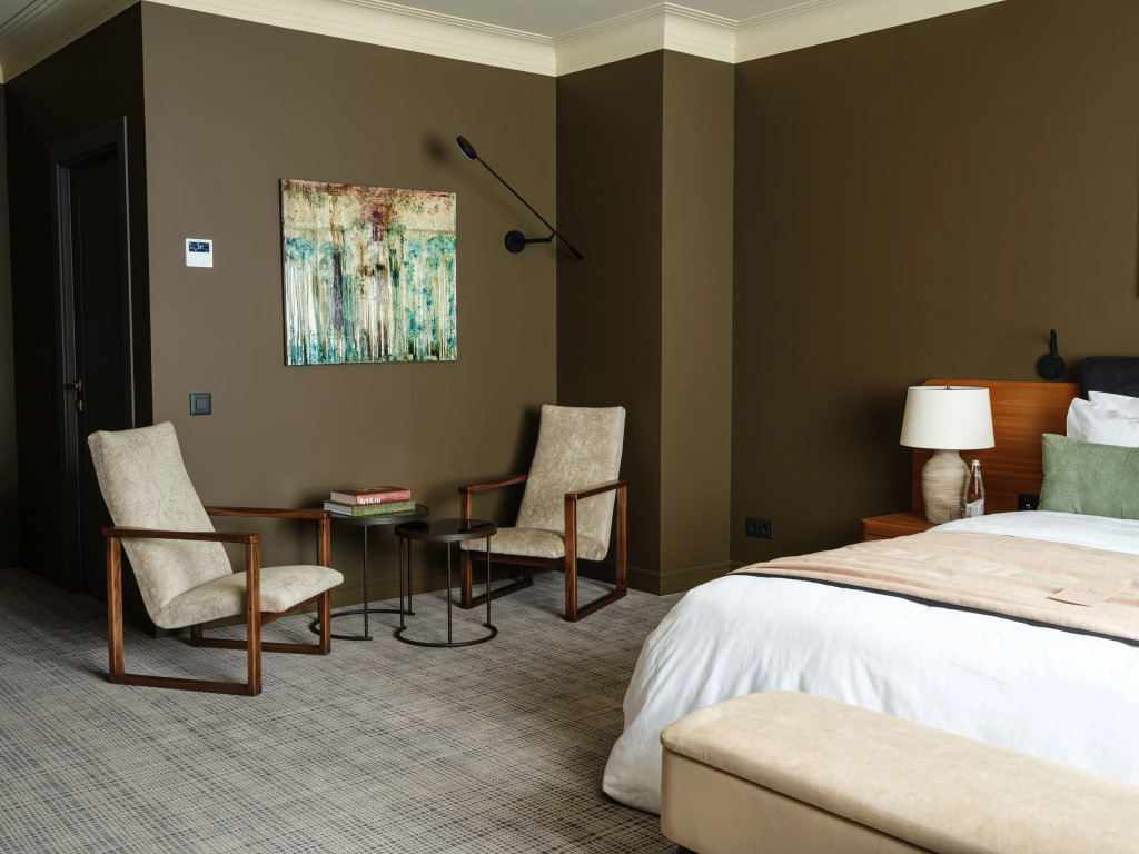 В номерах есть необходимое для отдыха кровати king-size с высокотехнологичными матрасами, укомплектованные мини-бары, капсульные кофемашины и премиальная косметика. Каждый номер бутик-отеля индивидуально спроектирован, декорирован и оборудован всеми удобствами. Номера отеля подходят как для деловых поездок, так и для семейного или парного отдыха.