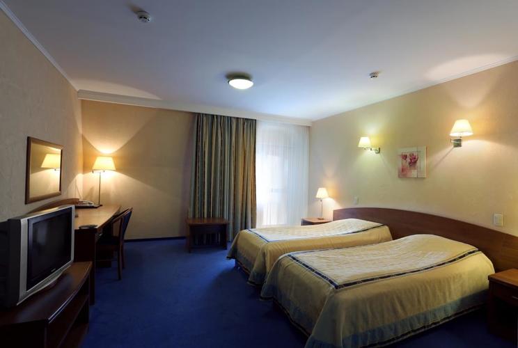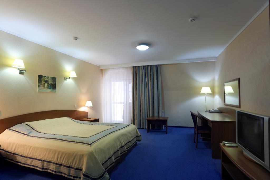 Однокомнатный номер площадью 29, 2 м2 с одной двуспальной или двумя односпальными кроватями. Номер для некурящих гостей. Во всех номерах есть балкон с видом на парк и лес. Оснащение номера: двуспальная или две односпальных кровати с ортопедическим матрасом, прикроватные тумбочки, шкаф для одежды, полка для багажа, журнальный столик, 2 стула, письменный стол, индивидуальный сейф, холодильник, телевизор, телефон, кондиционер, WI - FI, тапочки, набор для ухода за обувью, питьевая вода. Возможна