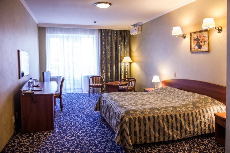 Просторный однокомнатный номер площадью 37, 5 м2 с одной двуспальной или двумя односпальными кроватями. Номер для некурящих гостей. В некоторых номерах есть перегородка. Оснащение номера: двуспальная или две односпальных кровати с ортопедическим матрасом, прикроватные тумбочки, шкаф для одежды, полка для багажа, журнальный столик, 2 стула, письменный стол, индивидуальный сейф, холодильник, lcd телевизор (кабельное телевидение), телефон, кондиционер, WI - FI, тапочки, халат, набор для ухода за