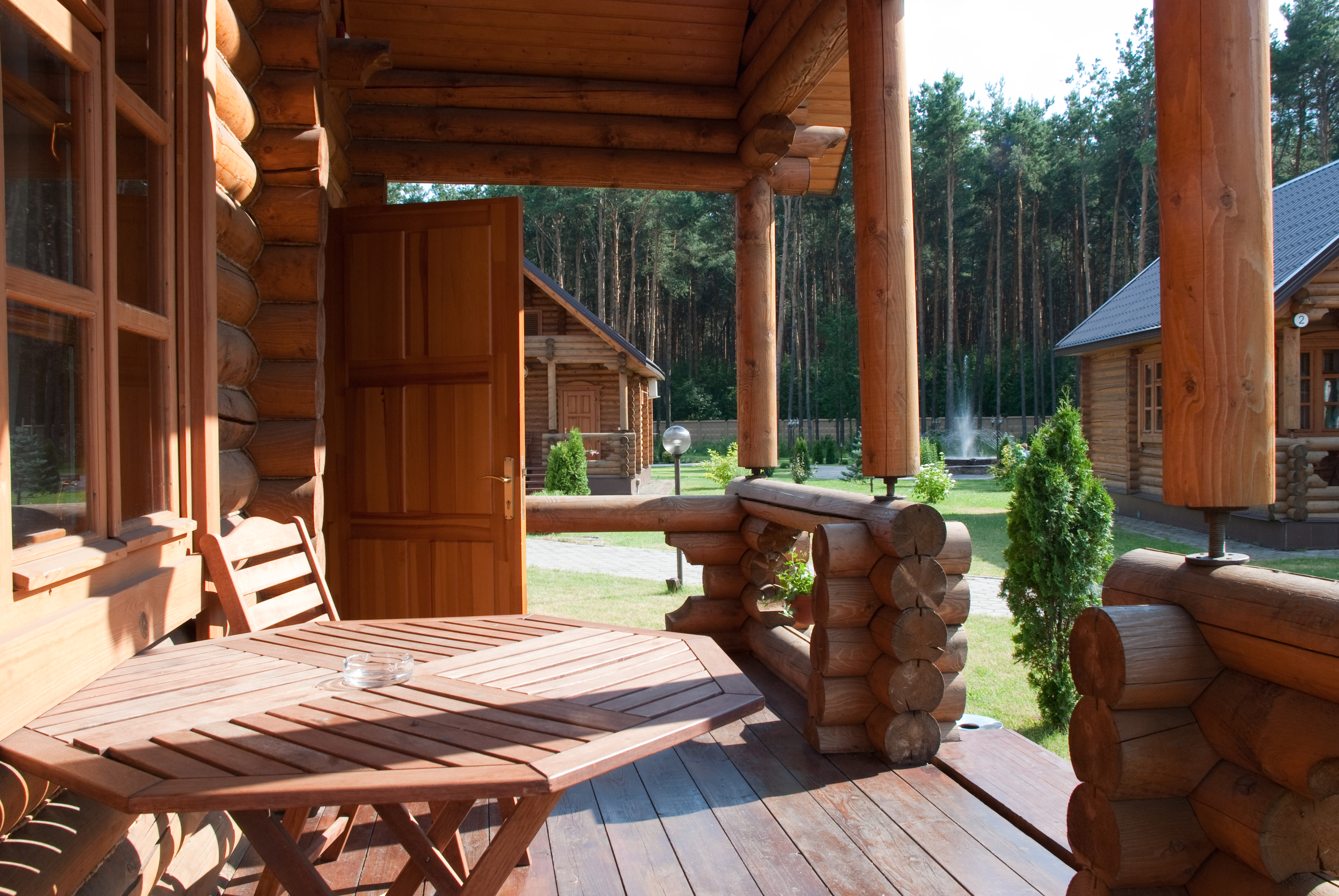 Деревянный коттедж с верандой. Для некурящих гостей. В коттедже индивидуальное регулируемое отопление, подогрев пола. Оснащение коттеджа: двуспальная кровать с ортопедическим матрасом, диван, прикроватные тумбочки, шкаф для одежды, полка для багажа, журнальный столик, 2 пуфа, письменный стол, индивидуальный сейф, холодильник, телевизор, телефон, кондиционер, WI - FI, электрический чайник, тапочки, халат, набор для ухода за обувью, питьевая вода, чай, сахар, капсульная кофе машина (капсулы опла