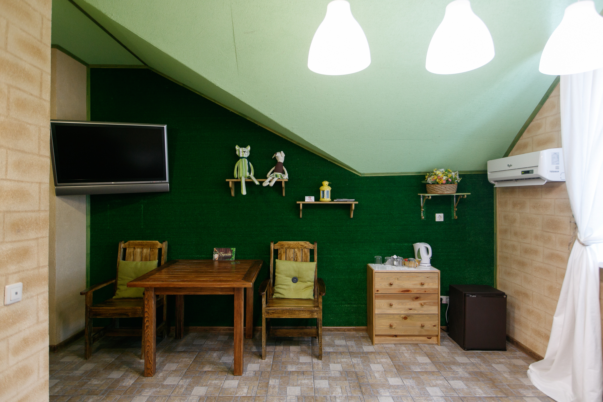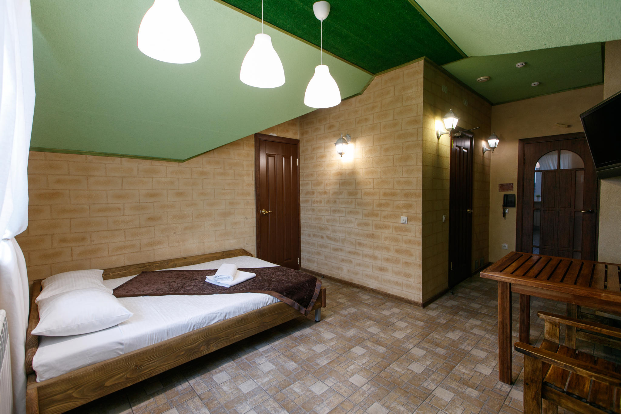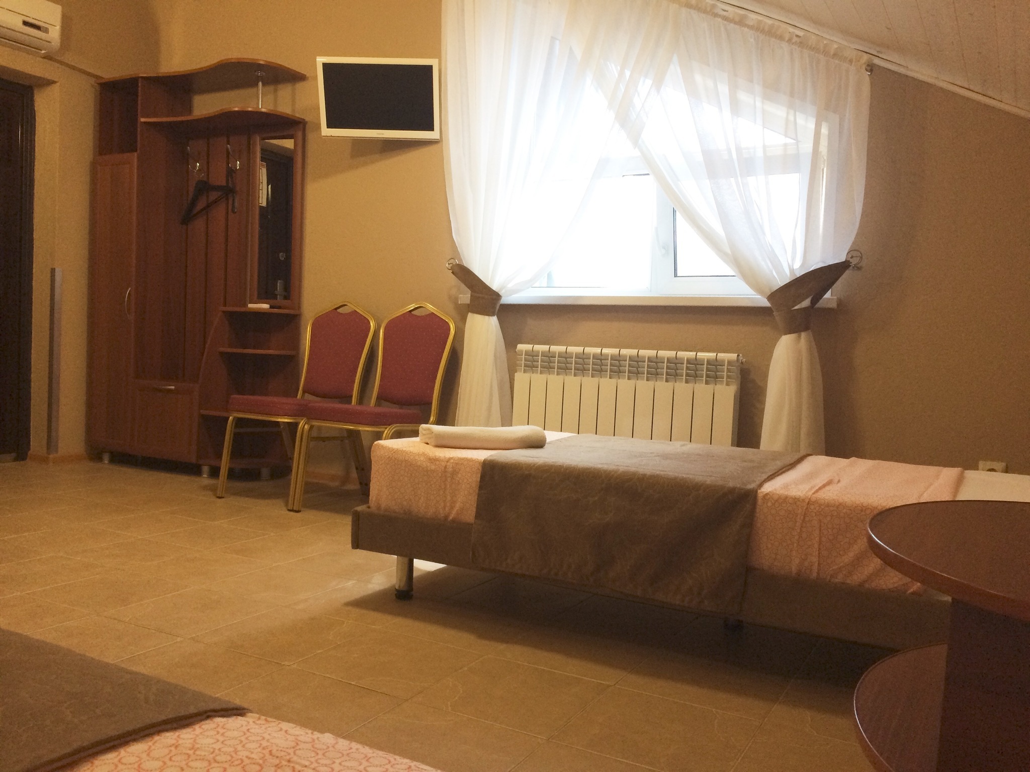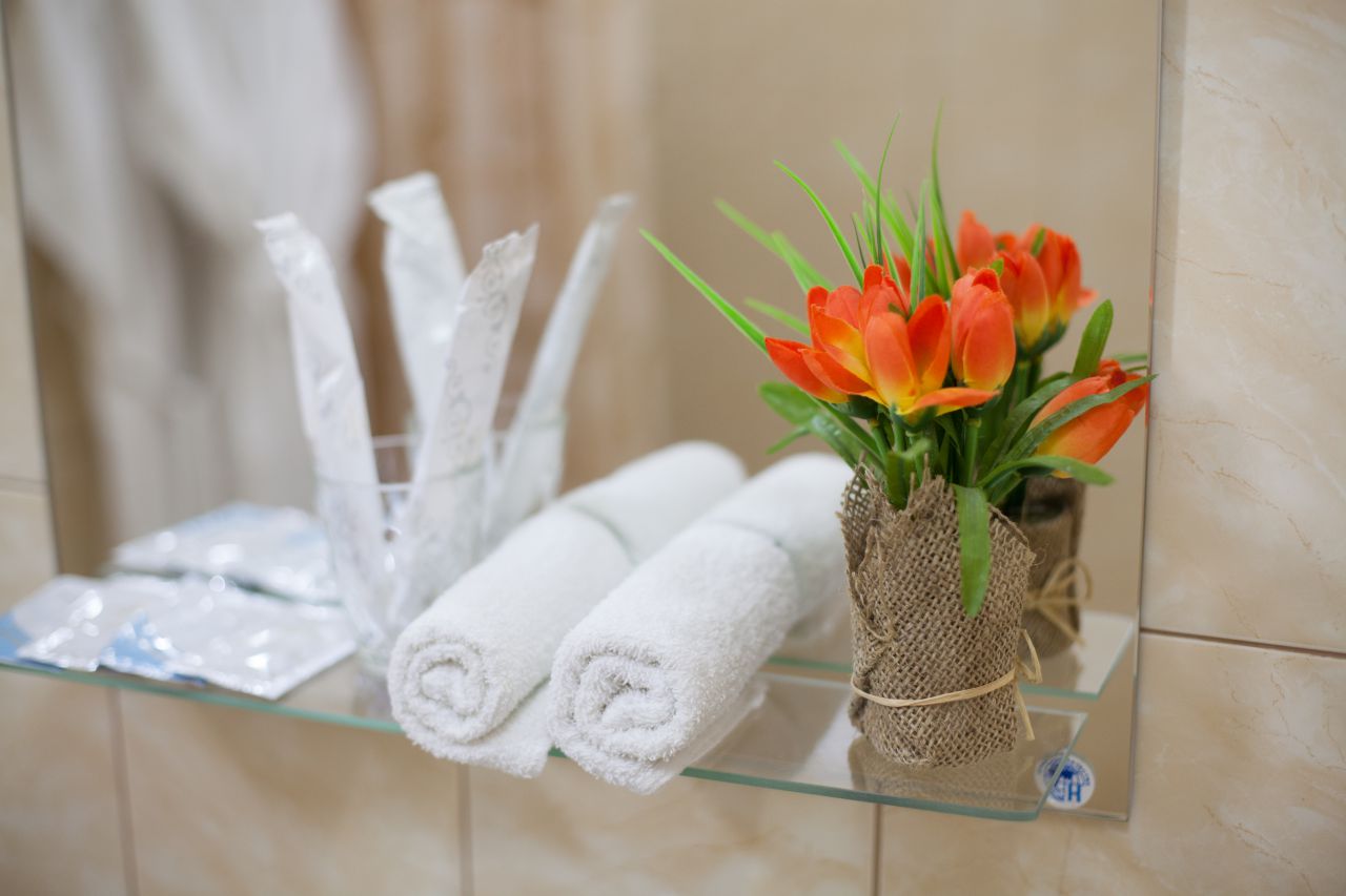 В номерах есть всё необходимое для комфортного отдыха: ванная комната со средствами гигиены, феном, свежее постельное бельё, чай, кофе, фрукты. Номера «люкс» дополнены сейфом, кондиционерами, джакузи. Вас ждут идеально чистые номера с элегантной мягкой мебелью. Для вашего удобства в номерах есть телефон для связи с ресепшн. Если у вас возник вопрос или что-то необходимо доставить в номер, просто позвоните! К вашим услугам доброжелательный и вежливый персонал.