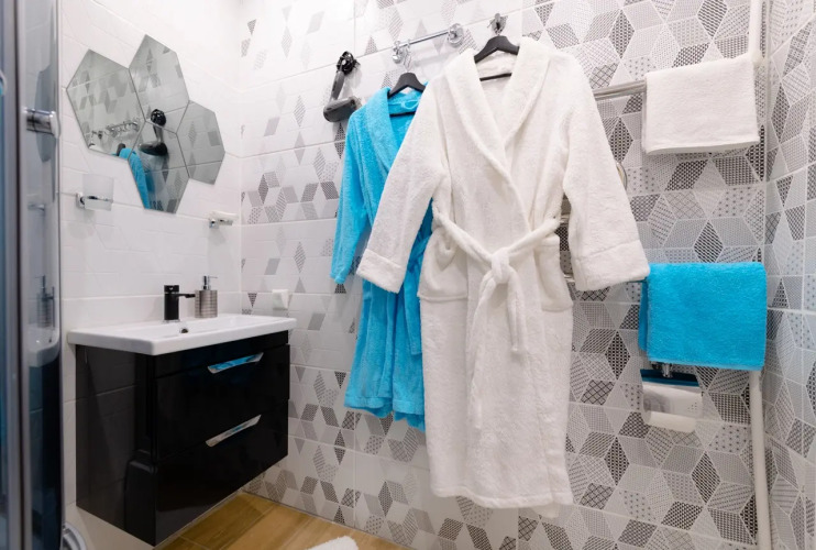 В номере вы найдёте телевизор. Оснащение зависит от выбранной категории номера.