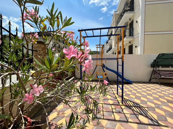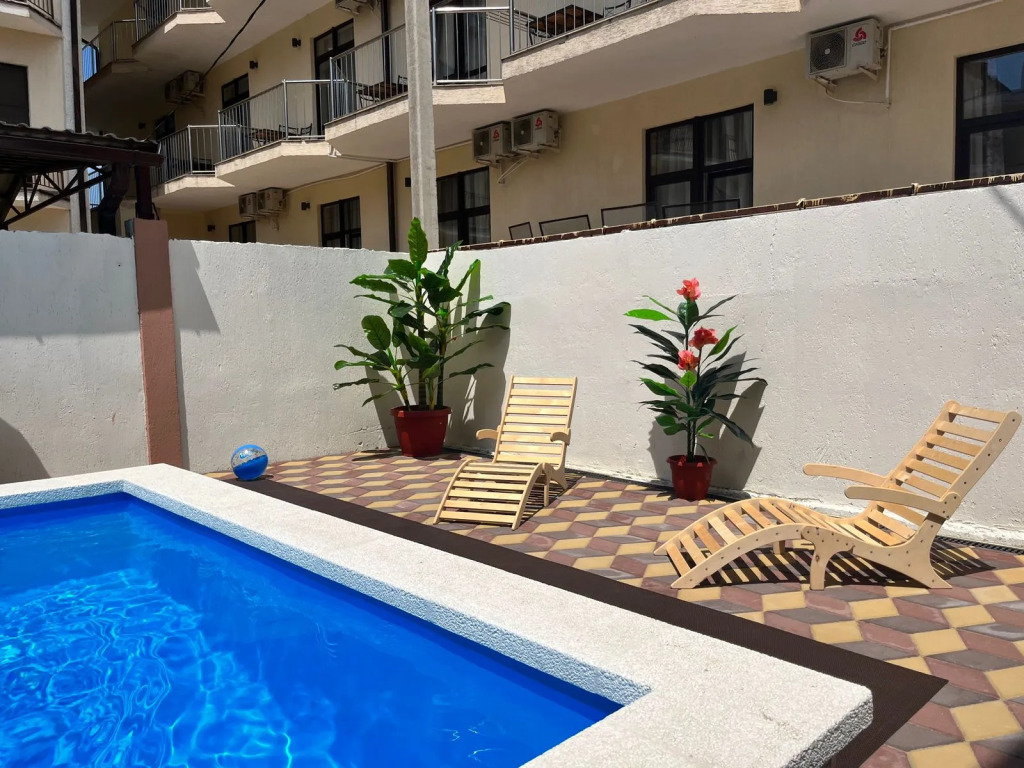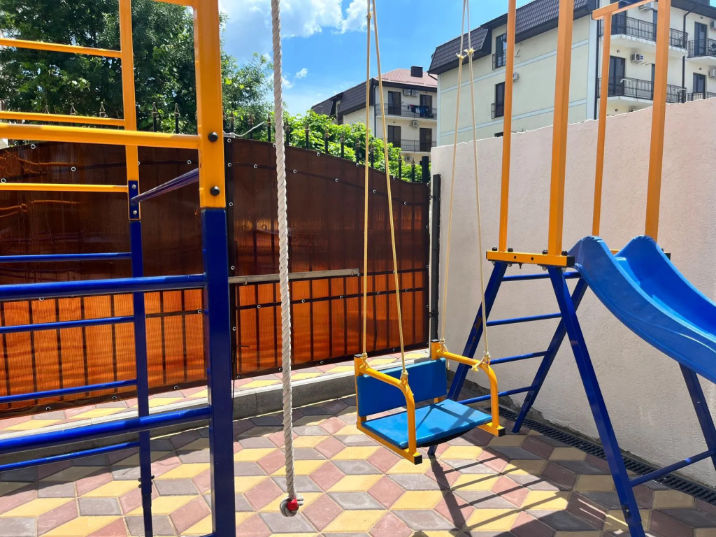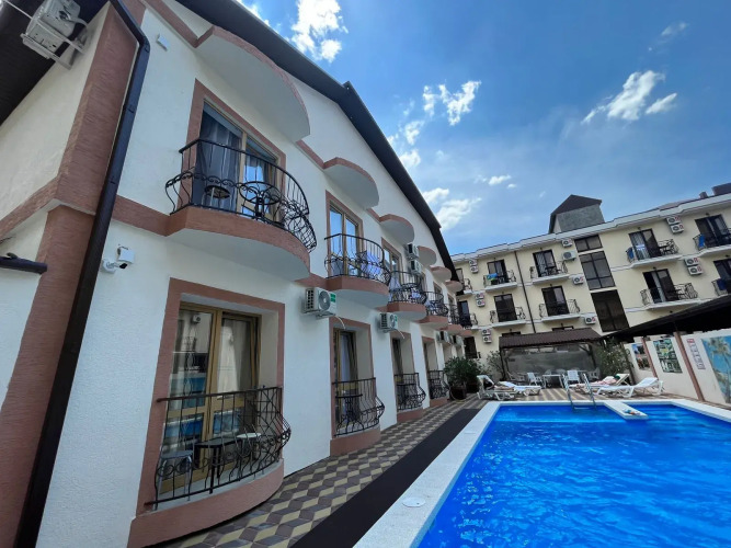 В гостевом доме есть бассейн с подогреваемой водой, мангальная зона и беседки для отдыха, а также парковка на улице, детская площадка, теннисный стол, прачечная, общая кухня. На территории имеется собственная скважина для постоянного доступа к воде.