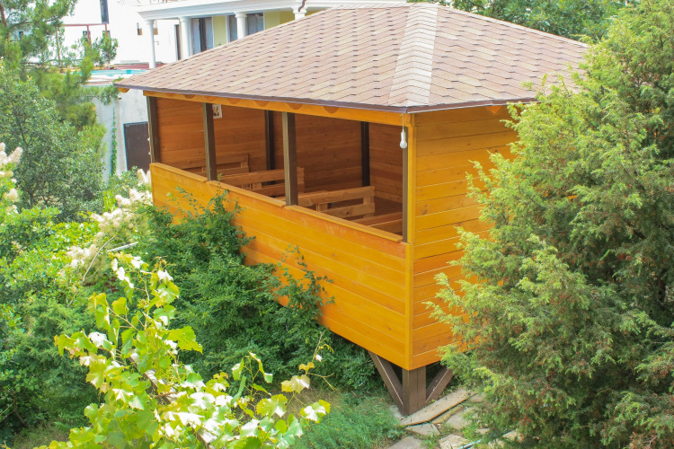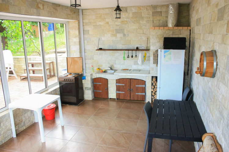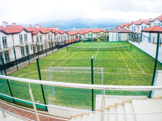 Территория закрытого типа, охраняемая, с коллективным бассейном. На территории обустроена детская игровая площадка, небольшой детский бассейн, спортивная площадка, большая беседка в лесной зоне с видом на море. Гостям предоставляются собственная кухня, имеется зона для курения.