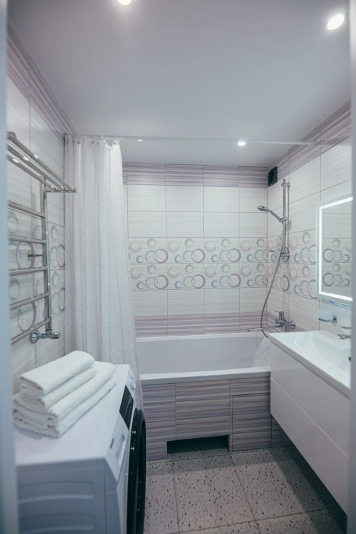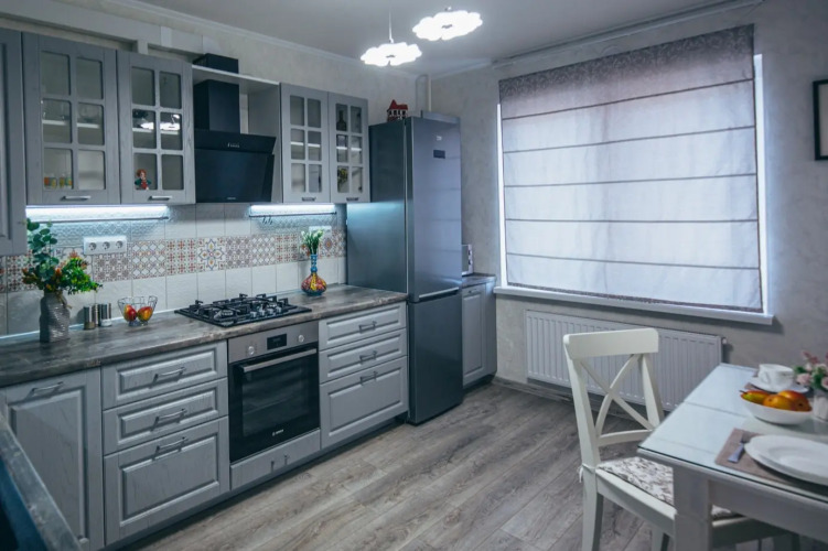 В апартаментах автономное отопление. Кухня оснащена встроенной мебелью, плитой, микроволновой печью, мойкой, вытяжкой, двухкамерным холодильником, электрическим чайником, посудой. Есть соль, сахар, чай, растительное масло. К услугам гостей раздельный санузел. В ванной комнате — ванна, умывальник, зеркало, фен, туалетные принадлежности, набор для душа, стиральная машина, пенал.