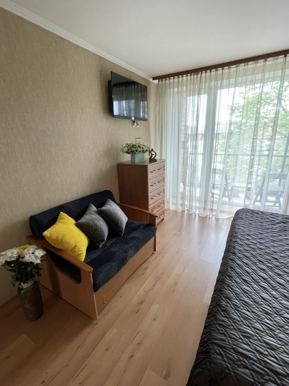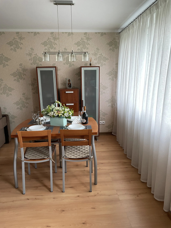 В квартире имеется: мебель, бытовая техника, смарт-TV, интернет, кондиционер, стиральная машина, бойлер (на случай отключения горячей воды), фен, холодильник, СВЧ-печь, питьевой фильтр, кухонная утварь, посуда, утюг и зонты для балтийской погоды.