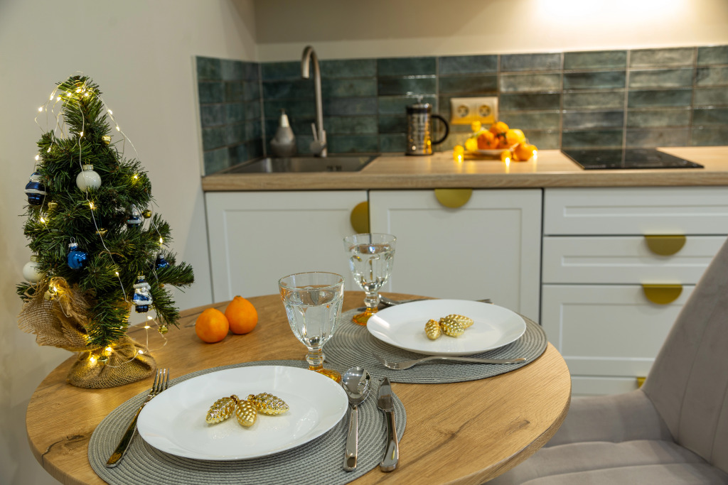 В квартире гостей ждёт двуспальная кровать с ортопедическим матрасом, полноценная ванна, стиральная машина и посудомоечная машина с набором капсул. Есть сушилка, гладильная доска и утюг. Приборы между заездами гостей подвергаются обязательной обработке, как и вся посуда, которая нуждается в очистке.