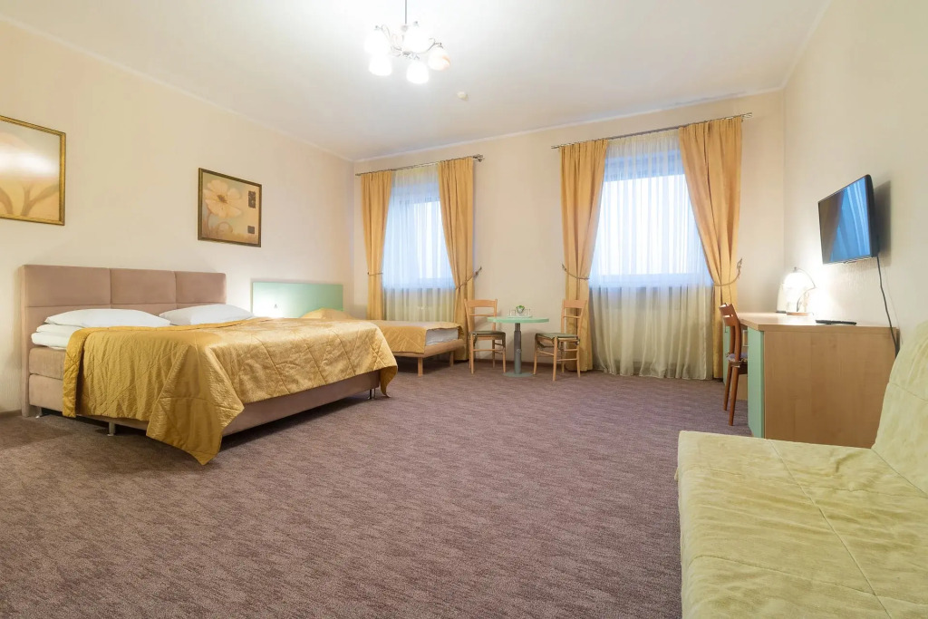 В номере вас будут ждать телевизор. Оснащение зависит от выбранной категории номера.