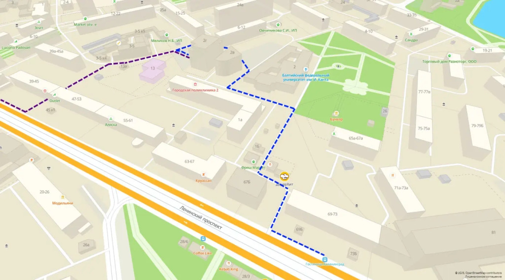 адрес на карте Калининград, улица Университетская, д.2Г, с описанием