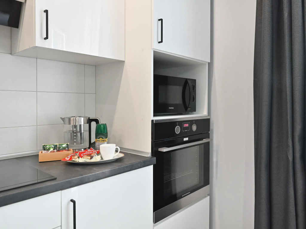 Хотите оставаться на связи? В апартаментах есть Wi-Fi. А ещё в распоряжении гостей индивидуальная регистрация заезда и отъезда.