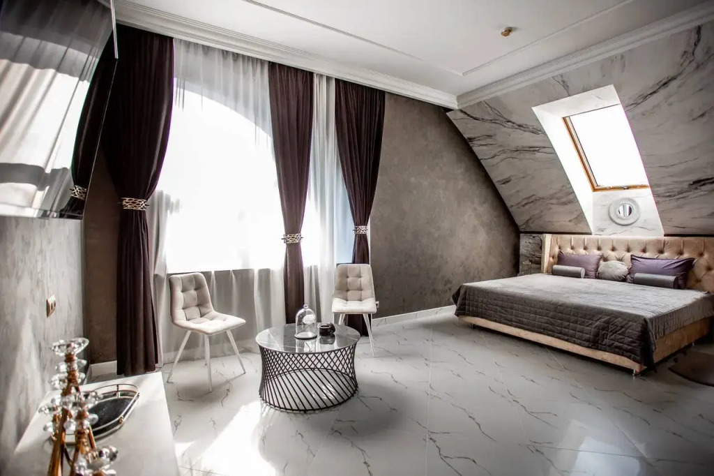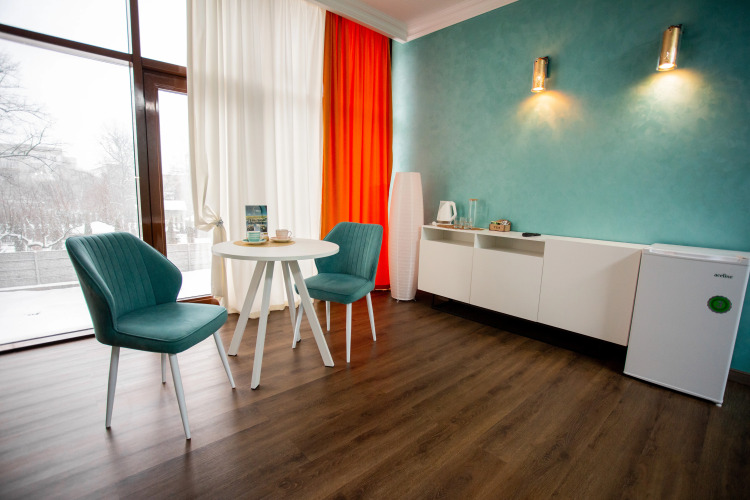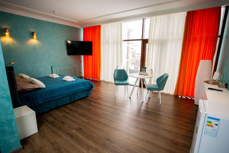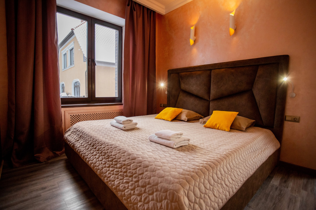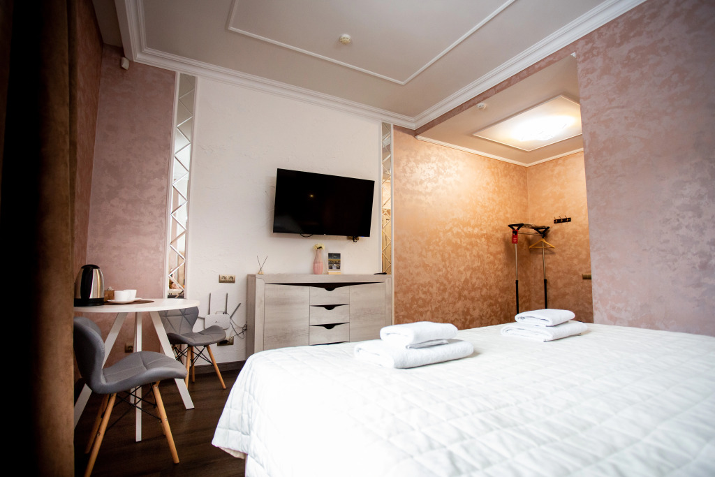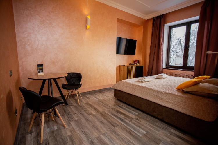 В распоряжении гостей номера в стиле Ар-Деко трёх категорий: стандарт, полулюкс, люкс. Каждый номер оснащён кроватью King Size и телевизором. В ванной комнате, в зависимости от категории номера, установлена душевая кабина или ванна.