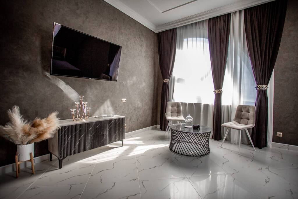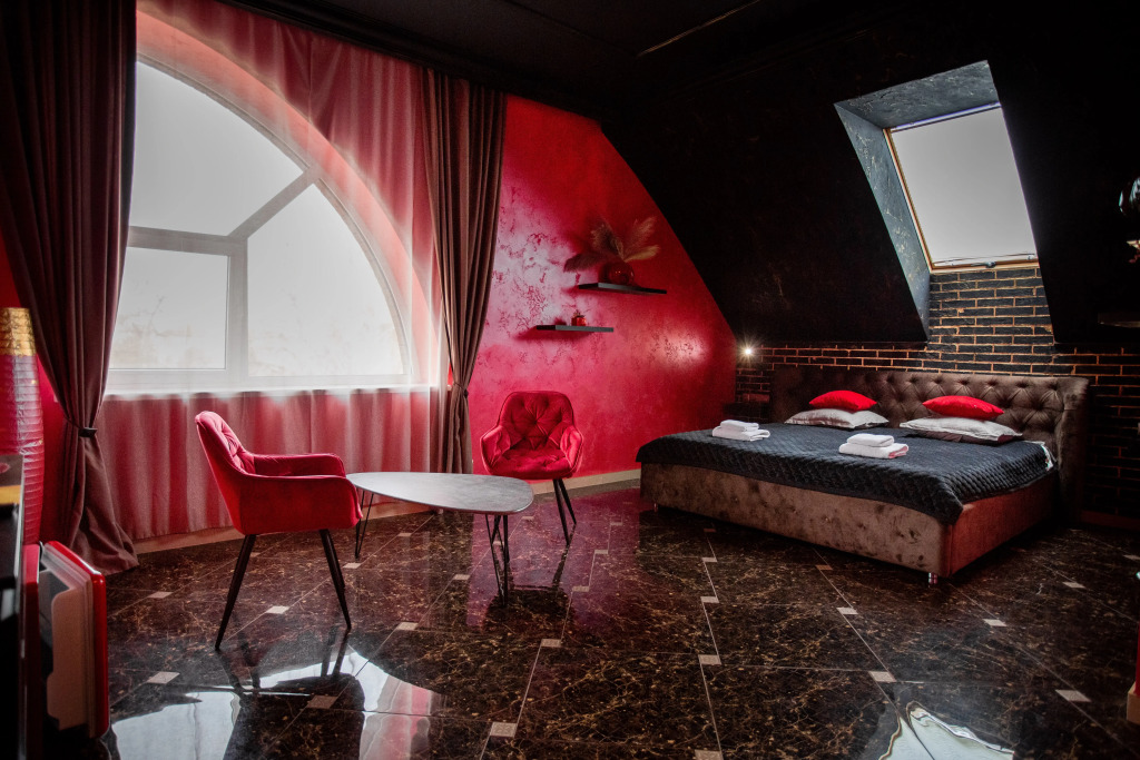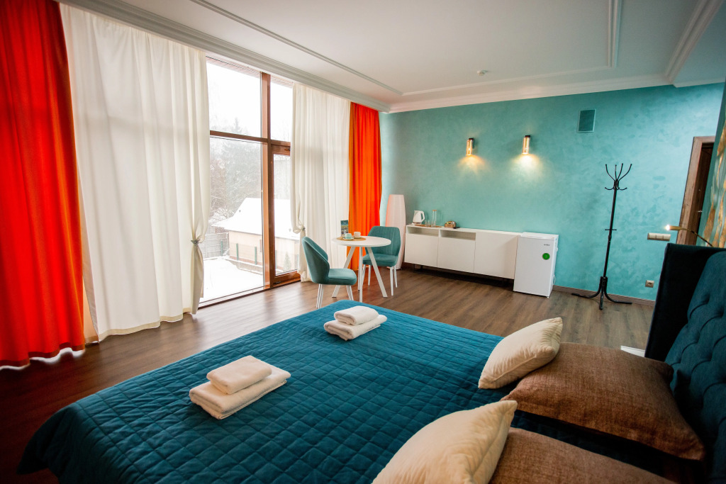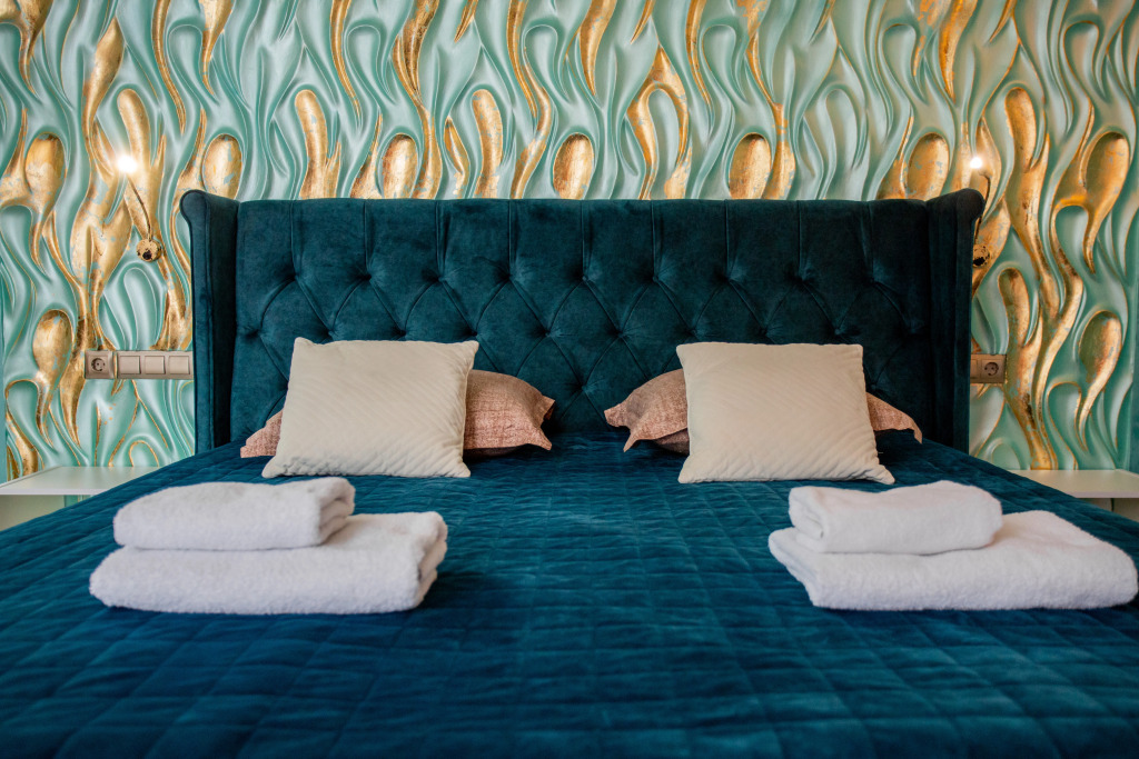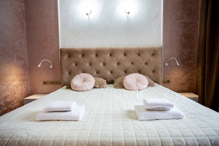В распоряжении гостей номера в стиле Ар-Деко трёх категорий: стандарт, полулюкс, люкс. Каждый номер оснащён кроватью King Size и телевизором. В ванной комнате, в зависимости от категории номера, установлена душевая кабина или ванна.