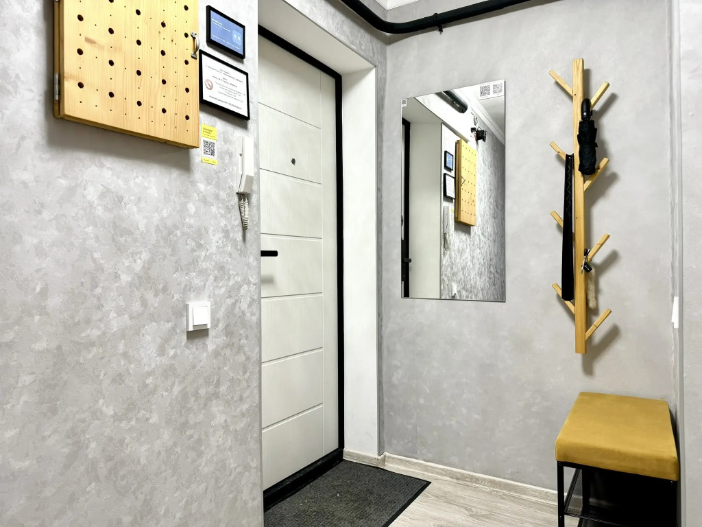 В апартаментах действует дистанционное заселение. Данные апартаменты оборудованы электронным замком.